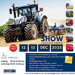 Op onze showdagen op 12+13 december 2025 tonen we graag onze nieuwe en gebruikte machines van gerenomeeerde merken als New Holland, Volvo, Beco, Imants, Gehl, Bobcat, Veenhuis, Schuitemaker en Pöttinger. De koffie staat klaar op vrijdag tussen 10 en 22 uur en op zaterdag zijn we geopend tot 16.30 uur. Van harte welkom!
