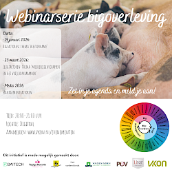 Op 19 januari 2026 trappen we de driedelige webinarserie “Bigoverleving” af met het thema biestopname. Dit initiatief is mede mogelijk gemaakt door: Baitech, TopigsNorsvin, De Dierenbescherming, het Varkensfonds, WUR, POV, Livar en VKON. Ieder webinar zoomt in op een ander thema uit het zogenoemde spinnewiel van bigoverleving en biedt praktische tips die direct toepasbaar zijn.