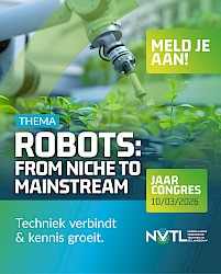 Het NVTL Jaarcongres 2026 komt eraan! Op dinsdag 10 maart 2026 verwelkomen we u bij Robohouse in Delft (robohouse.nl) voor een inspirerende dag volledig in het teken van de nieuwste ontwikkelingen in robotica voor de agrarische en agro-technologische sector.
