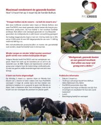ProCROSS staat voor gezonde, sterkte koeien die lang en probleemloos produceren. Op het melkveebedrijf van Arjan en Wenda is dit resultaat duidelijk zichtbaar. De huidige dagproductie liegt er niet om: 35,8 kg melk met 4,78% vet en 3,50% eiwit. En een 305-dgn-productie van ruim 11.000 kg melk met 889 kg v+e.